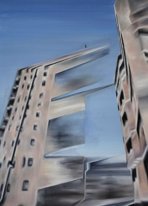 Aunque el espectador no recepcione ubicado en un único punto fijo encontrará su comportamiento reducido a un scroll vertical y horizontal; los mismos movimientos de cabeza que realizamos cuando recorremos una ciudad que según su planteo urbanístico nos obligará a levantar o a bajar la vista. Reforzar el límite de la pintura, por oposición a la imagen continua y sin borde del Google street view, permite distinguir de manera clara que asistimos a la representación de un espacio ficticio, antinatural e ilusorio. En los límites claros descansa la seguridad de una contemplación confortante. El límite es necesario porque nos instruye sobre los comienzos y finales de un proceso de interpretación. Las creaciones de Landajo evidencian que la pintura ya no puede ser pensada como una ventana abierta al mundo. Se abren, pero a realidades múltiples producto del uso de tecnologías virtuales en el proceso creativo.