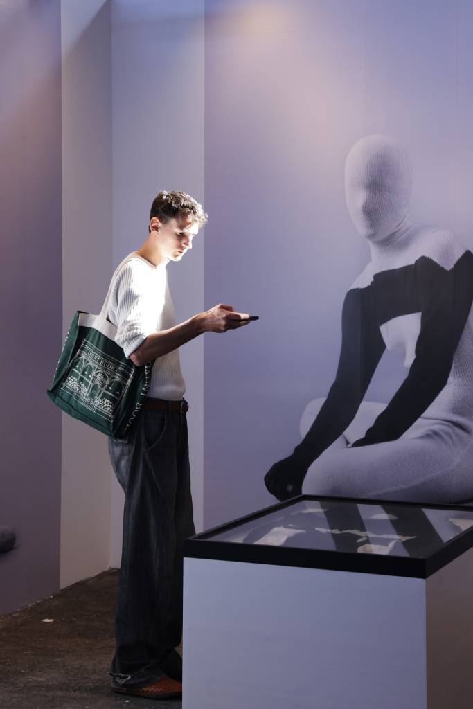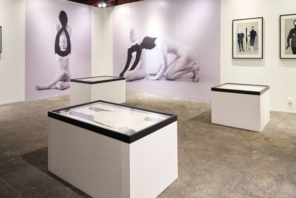 En 2023 Marina los activó en diálogos en los que los cuerpos establecen relaciones más flexibles, más orgánicas. Los trajes se presentan doblados, plegados en formas que evocan lo que allí sucedió, los momentos en los que esos dobles fueron vividos.