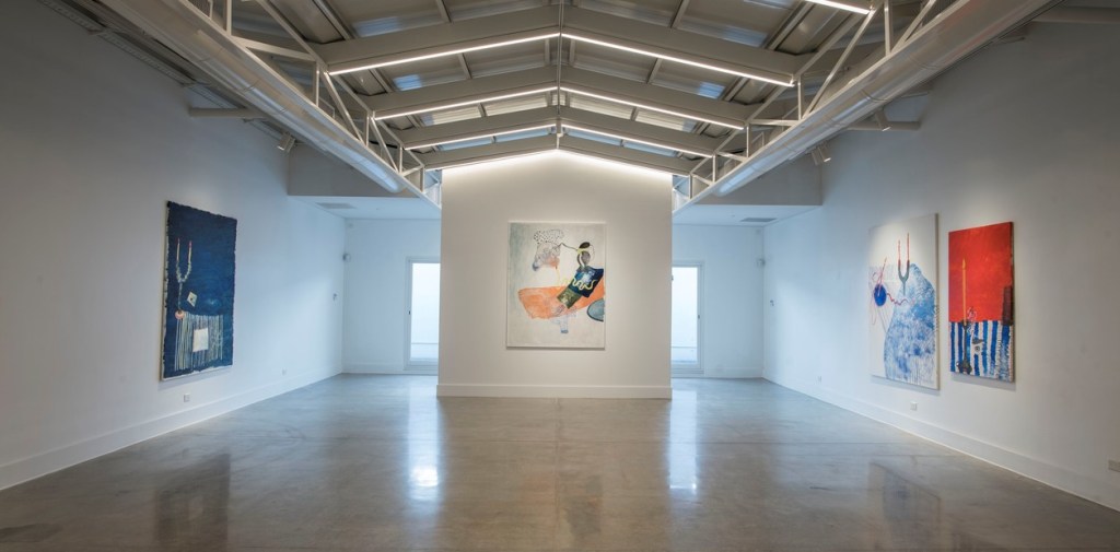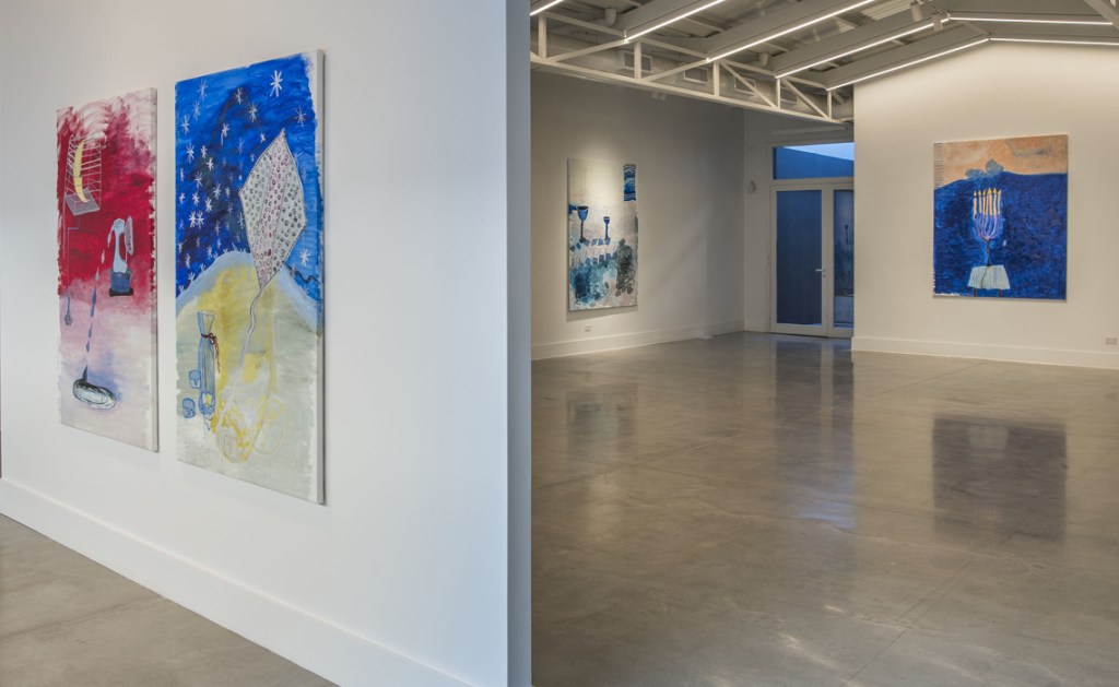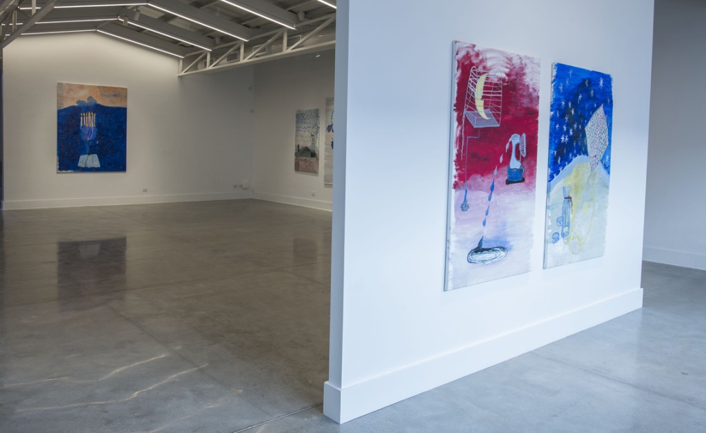 Hay un aire de fantasía en todo el recinto, si bien la pintura no es más que manchas de color sobre tela, la factura tan particular de Macri hace sentir real el humo de las velas recién consumidas. Sus trazos chorreantes son como pequeñas gotas de cera líquida, muy parecidas a las gotas de agua en una nube.
