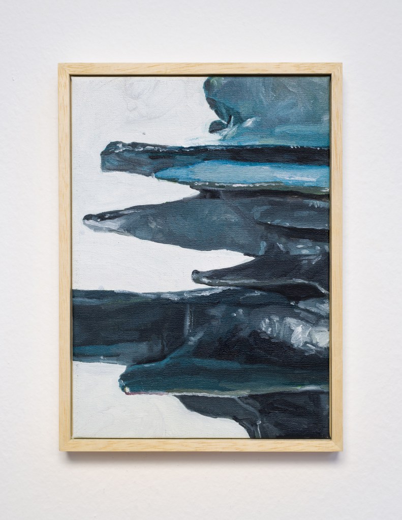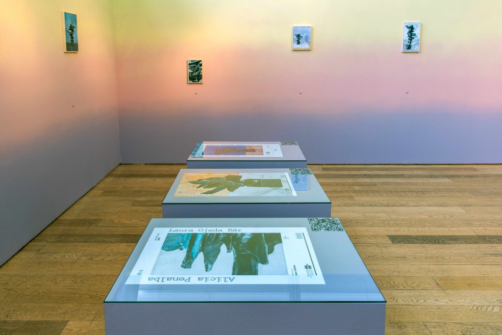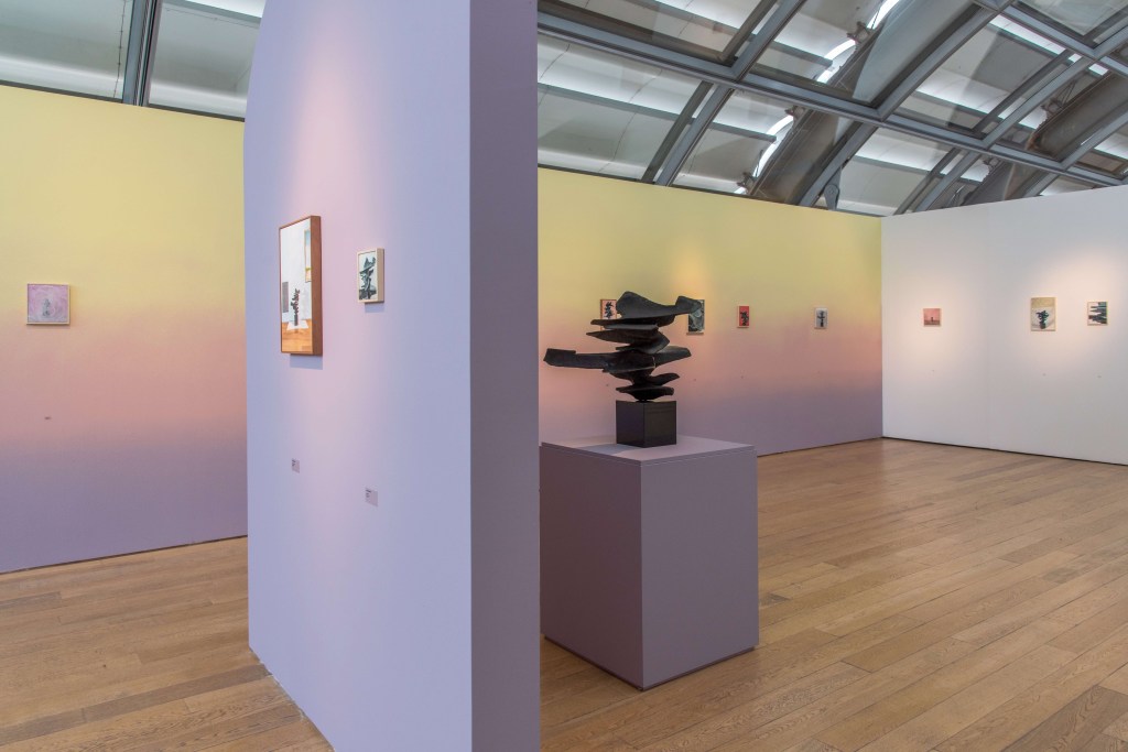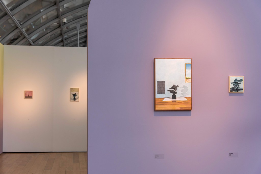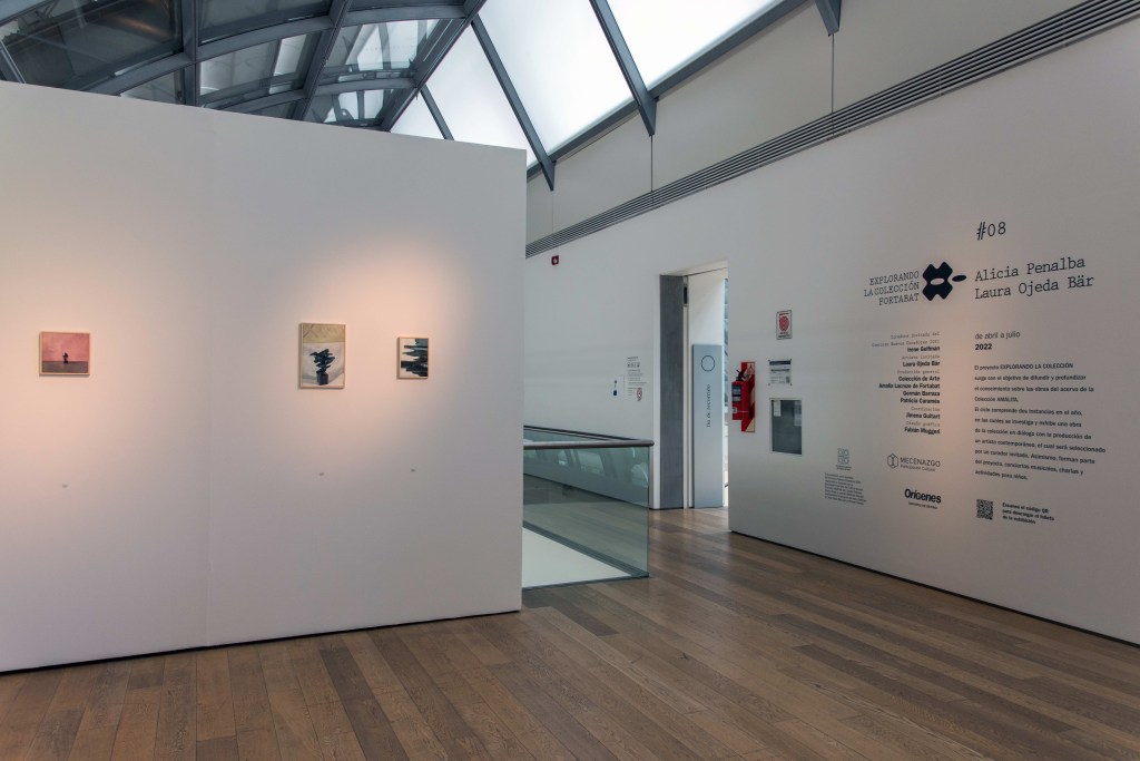 La escultura de Penalba irrumpe en el espacio expositivo de manera contundente, tanto con su materialidad como con sus decisiones formales. La pesadez del material contrasta con la forma y la gracia con la que la escultora trabaja. Nos enfrenta a situaciones espaciales tan complejas que solo se aprecian del todo pudiendo recorrer la pieza en su totalidad. En contraposición, los cuadros de Laura Ojeda Bär se sitúan desde la naturaleza misma de la pintura, centrándose en su ser imagen. Ojeda Bär piensa la pintura como una forma de conocimiento más. Con su modo de trabajar personal y su mirada perspicaz sobre los eventos cotidianos que vivencia y cómo experimenta los roces con el mundo exterior -que a veces puede resultar hostil y distante-, la artista induce al espectador a reflexionar sobre la noción de espacio y tiempo.