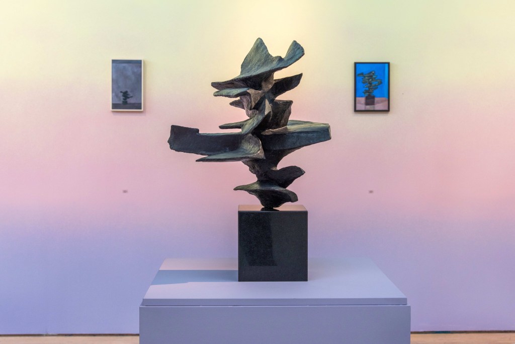 Durante los años 50 y principios de los 60 Alicia Penalba concibió diferentes series de obra: verticales o totémicas y otras con elementos separados dobles o formas voladoras. Ancetre Ailee integra el segundo grupo. Con estas tipologías experimentó en múltiples repeticiones, ritmos, variaciones y cambios de escala; buscó contrastes entre texturas, brillos y opacidades, lo rústico y lo refinado, aspectos que Laura Ojeda Bär trabaja desde la materialidad plástica cuando transforma grandes, voluminosos y pesados hitos de la historia del arte en objetos planos y livianos.