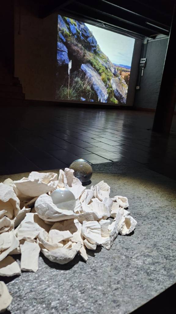 Ningún enunciado puede darse sin la presencia de una voz, de una superficie, sin hacerse cuerpo en un elemento sensible y sin dejar rastro en un espacio o en una memoria. Las piedras de Balcarce presentes en el centro de la sala, dan cuenta de esto, cada marca en ellas es parte de un relato pasado que si le diéramos el tiempo necesario para su contemplación podríamos descubrir. Si bien, cada obra funciona como un sistema en sí mismo, al convivir conforman una geografía imaginaría de tiempos pretéritos, donde la falta de estímulos externos ayudaban a la contemplación de nuestro entorno.